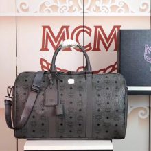 MCM包包批发 Traveler Visetos周末旅行包 耐用的Visetos印花涂层帆布与粘合衬里制成 深空灰