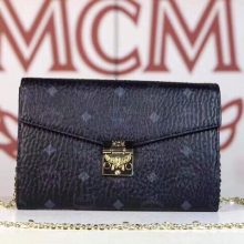 MCM Patricia系列 斜挎包单肩包折叠翻盖钱包 采用涂层帆布制成 风琴式隔层 黑色