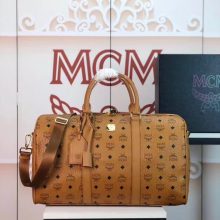 MCM包包批发 Traveler Visetos周末旅行包 耐用的Visetos印花涂层帆布与粘合衬里制成 土黄
