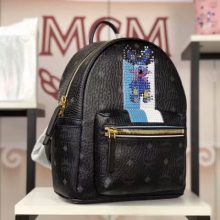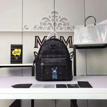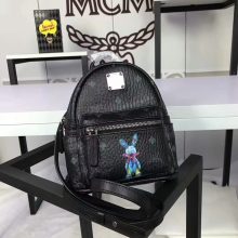 MCM韩国官网 2018春夏新款 珠钻彩虹兔子双肩包 重工钉珠工艺 可爱兔子图案 黑色