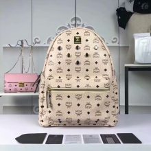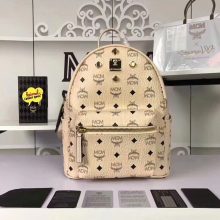 MCM经典款 六钉全新多面体五金 透气肩带全皮内里 米白