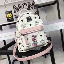 MCM兔子背包超迷你号 全新皮质纹理 内搭厚实耐用粗纹帆布 可斜跨可双肩背 白拼粉