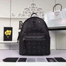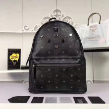 MCM经典款 六钉全新多面体五金 透气肩带全皮内里 黑色