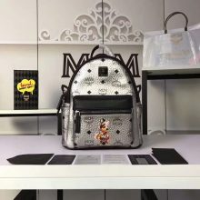 MCM兔子背包迷你号 全新皮质纹理 内搭厚实耐用粗纹帆布 银色