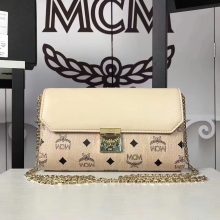 MCM新款 Visetos Patricia手袋斜跨链条包 粗纹进口PVC配原版牛皮 米白拼皮