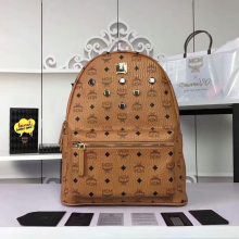 MCM经典款 六钉全新多面体五金 透气肩带全皮内里 土黄