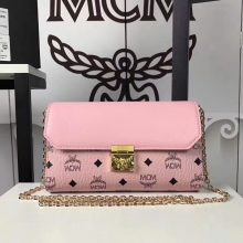 MCM新款 Visetos Patricia手袋斜跨链条包 粗纹进口PVC配原版牛皮 冰激凌粉拼皮