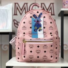 MCM韩国官网 2018春夏新款 珠钻彩虹兔子双肩包 重工钉珠工艺 可爱兔子图案 冰激凌粉