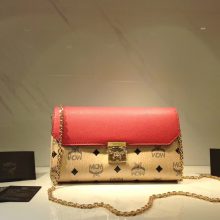 MCM新款 Visetos Patricia手袋斜挎链条包 粗纹进口PVC配原版牛皮 内里细腻绒布 酒红拼米白