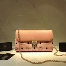 MCM新款 Visetos Patricia手袋斜挎链条包 粗纹进口PVC配原版牛皮 内里细腻绒布 冰激凌粉拼皮