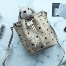 MCM韩国官网 小狗狗摆件水桶抽绳包 Visetos印花 小狗摆件可拆卸 米白