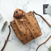 MCM韩国官网 小狗狗摆件水桶抽绳包 Visetos印花 小狗摆件可拆卸 土黄
