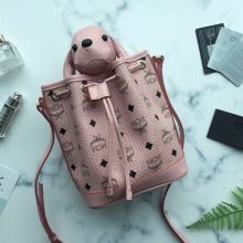 MCM韩国官网 小狗狗摆件水桶抽绳包 Visetos印花 小狗摆件可拆卸 冰激凌粉