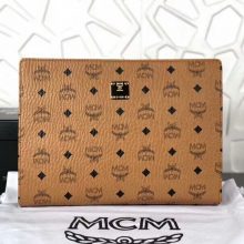 MCM2018年新款 经典LOGO印花拉链手包 原单PVC顶级ykk玉米大牙 无手绳 土黄