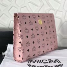 MCM2018年新款 经典LOGO印花拉链手包 原单PVC顶级ykk玉米大牙 无手绳 粉色