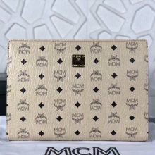 MCM2018年新款 经典LOGO印花拉链手包 原单PVC顶级ykk玉米大牙 无手绳 米白