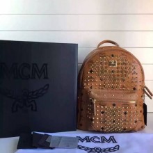 MCM包包批发 BIONIC系列背包 全新金属牌 耐用绒布内里 ykk拉链头配U型扣 土黄