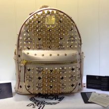 MCM包包批发 BIONIC系列背包 全新金属牌 耐用绒布内里 ykk拉链头配U型扣 米白