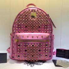 MCM包包批发 BIONIC系列背包 全新金属牌 耐用绒布内里 ykk拉链头配U型扣 粉色