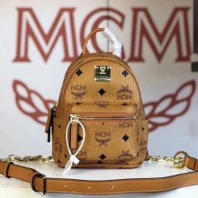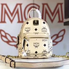 MCM 秋冬新款 x-mini 拼色双肩包(土黄/白色)可斜挎/单肩背/双肩背 简约上身百搭款
